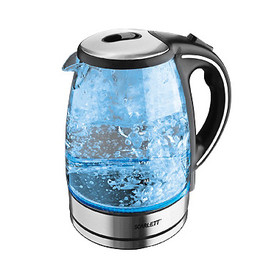 Макс.потребляемая мощность — 2200 Вт Максимальный объём — 1.7 л Нагревательный элемент — закрытая спираль Материал корпуса — стекло Центральный контакт (360*) — Да Подсветка корпуса — Да Вес — 1.15 кг |
