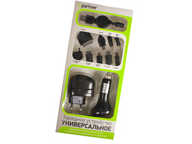 Partner представляет Вашему вниманию универсальный комплект зарядных устройств. Теперь все под рукой, автомобильное и сетевое зарядное устройство, переходники для большинства телефонов, смартфонов, планшетов, навигаторов, Mp3 плееров. В прочный корпус зарядных устройств встроена защита от перегрузок и короткого замыкания. Характеристики: microUSB/miniUSB Сетевое ЗУ: вход 100-240В, 50-60Гц, выход 5В,1А Автомобильное ЗУ: вход 12-24В, выход 5В,1А